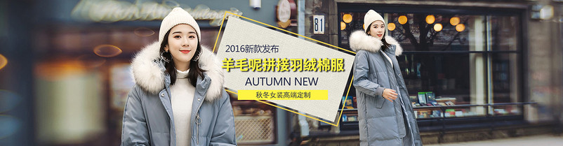 全屏海报 banner 海报 女装海报 秋冬女装 简约风 时尚女装 黄色调 街头背景 棉衣 棉服 羽绒 外套