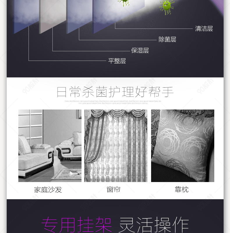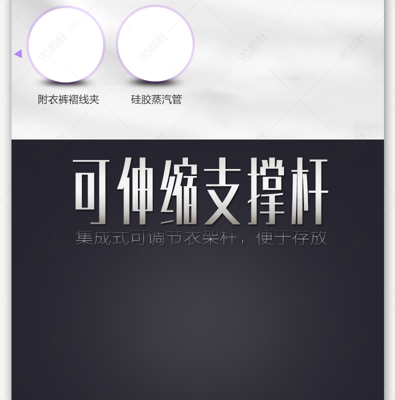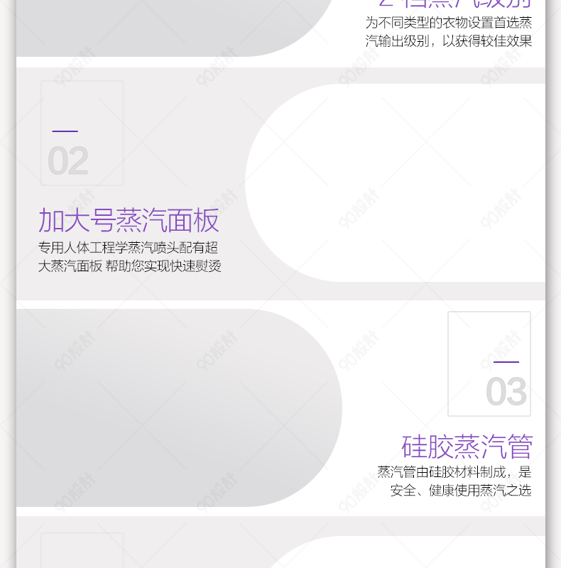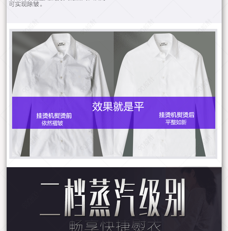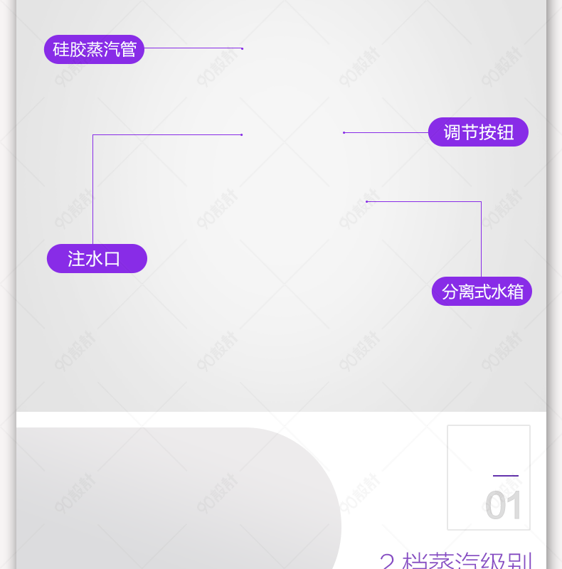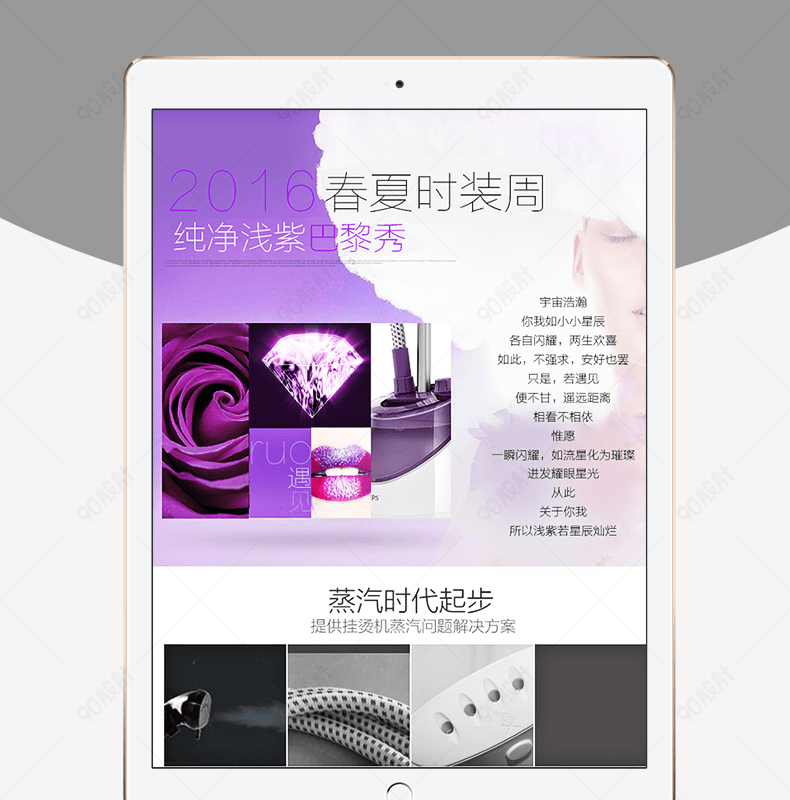 高端 生活电器详情页 挂烫机详情页 电熨斗 吸尘器 紫色背景 花朵 钻石 蒸汽 衬衣