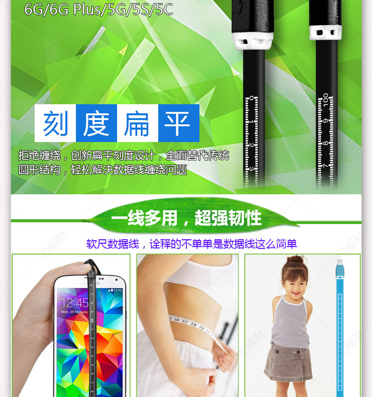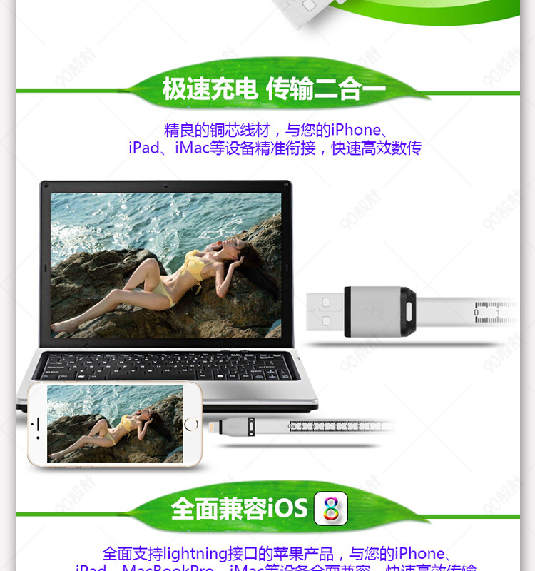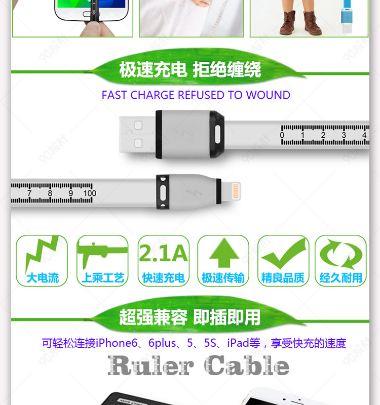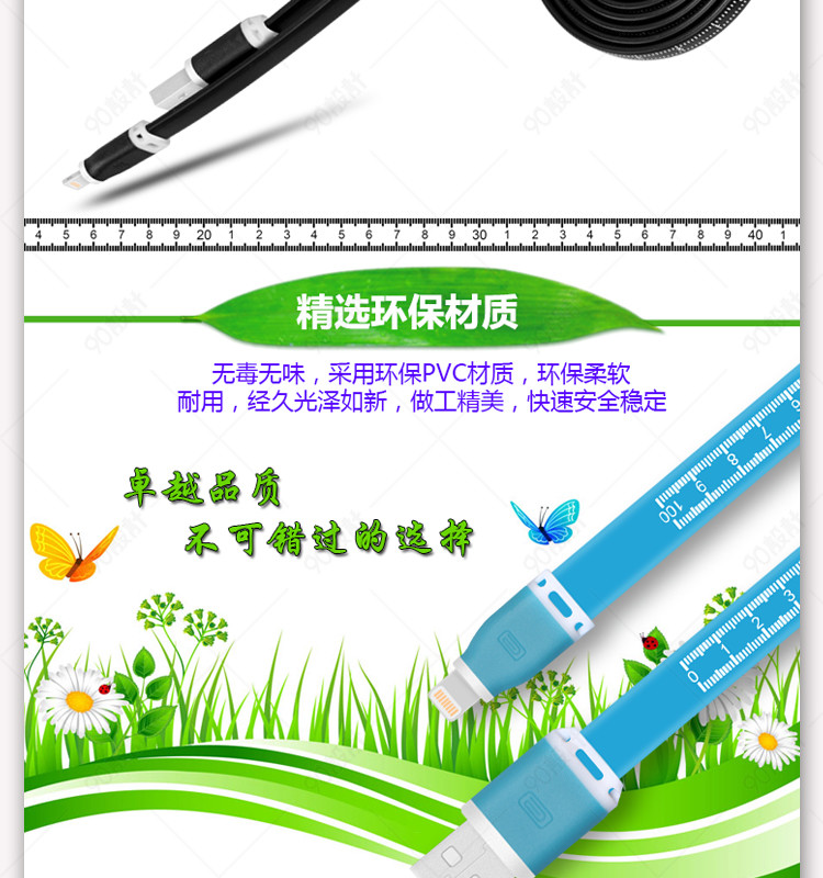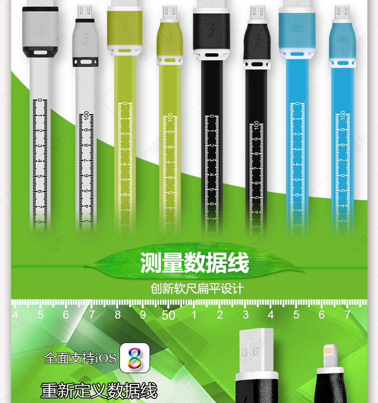 简洁 简单 清新 数码产品详情页 数据线详情页 充电宝 充电头 路由器 直尺 电流 草地