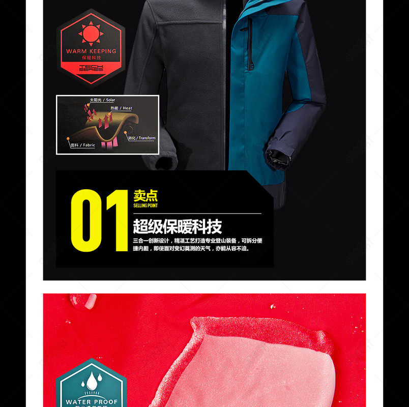 淘宝天猫 秋冬男装 黑色炫酷背景 云雾 放风 保暖 新品上市 拼色 外套 详情页psd模板 梦想起航