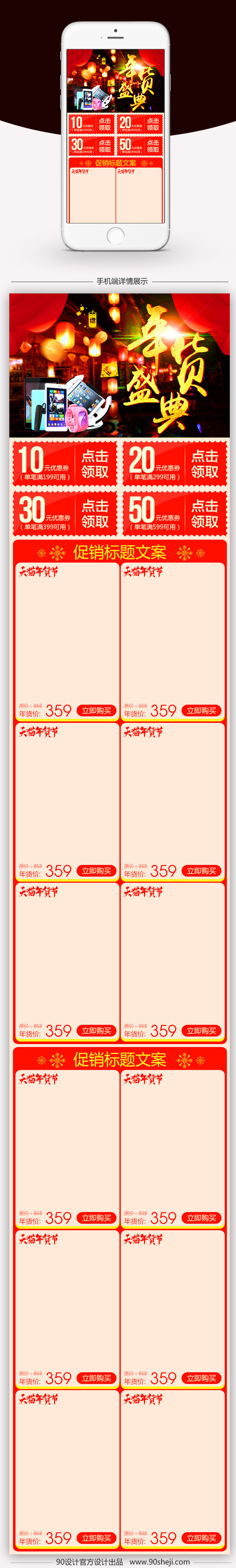 90设计提供 红色喜庆数码无线端首页模板PSD设计素材下载,高清PSD格式。【通用】多类目可用,产品、模特均可替换。【PSD】精细分层,贴好片。【设计】由90设计师独家设计。点击右侧免费下载按钮可进行 红色喜庆数码无线端首页模板PSD淘宝设计素材高速下载。
