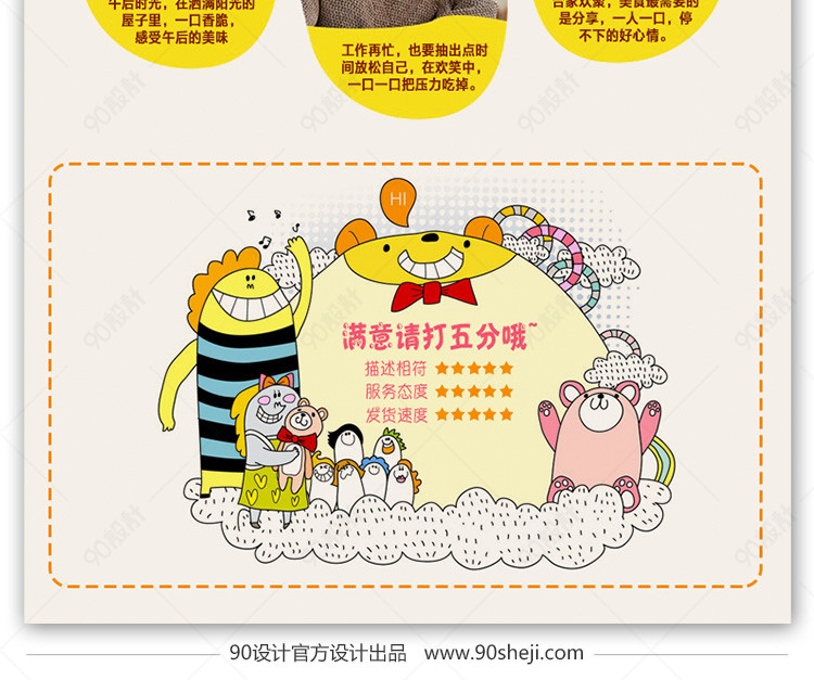 90设计提供卡通可爱风零食详情页PSD模版设计素材下载,高清PSD格式。【通用】多类目可用,产品、模特均可替换。【PSD】精细分层,贴好片。【设计】由90设计师独家设计。点击右侧免费下载按钮可进行卡通可爱风零食详情页PSD模版淘宝设计素材高速下载。