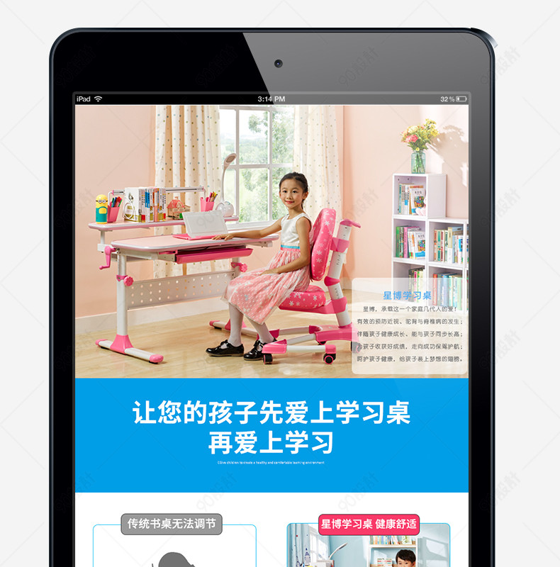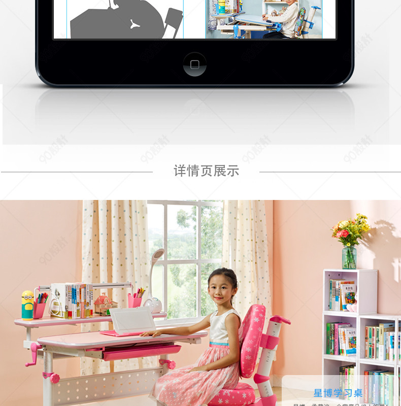 淘宝天猫时尚简约家居儿童书桌椅详情页psd模板