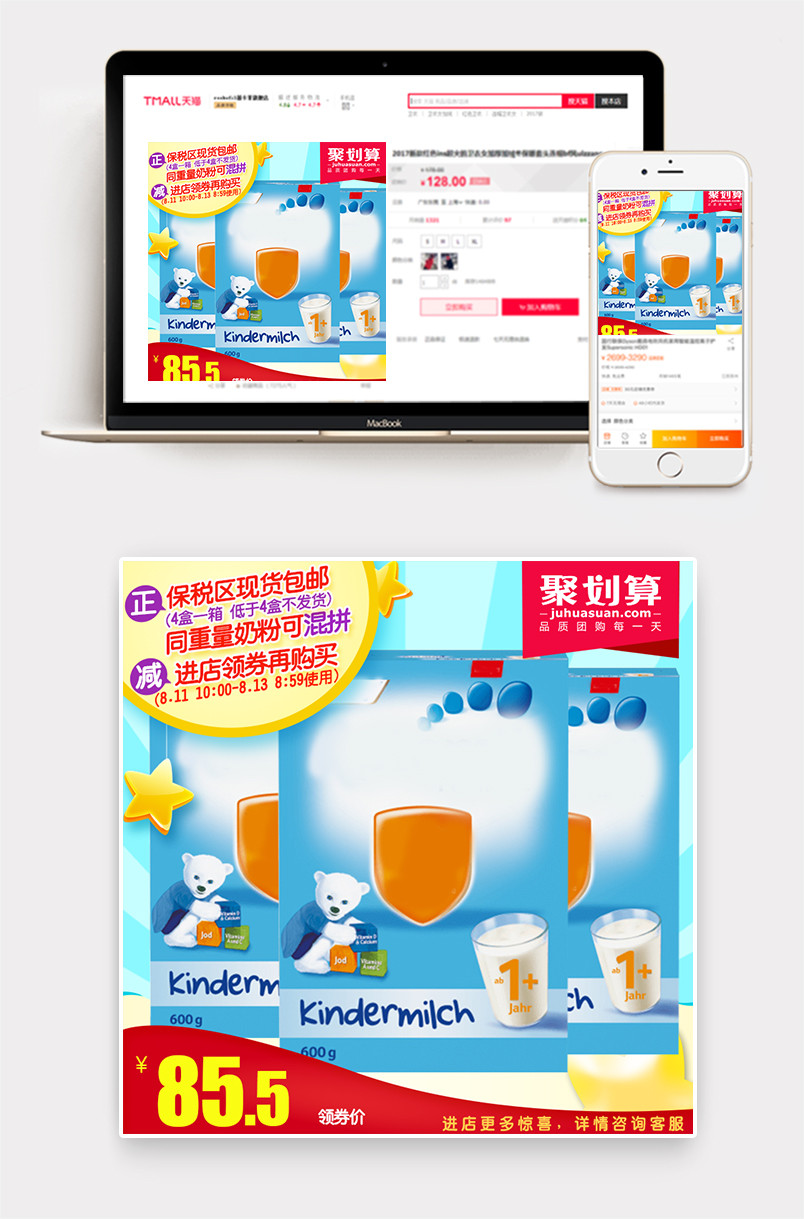 聚划算淡蓝色母婴奶粉促销主图直通车psd模板