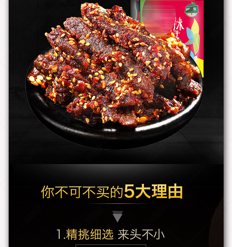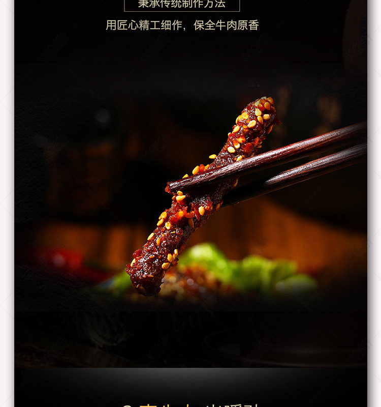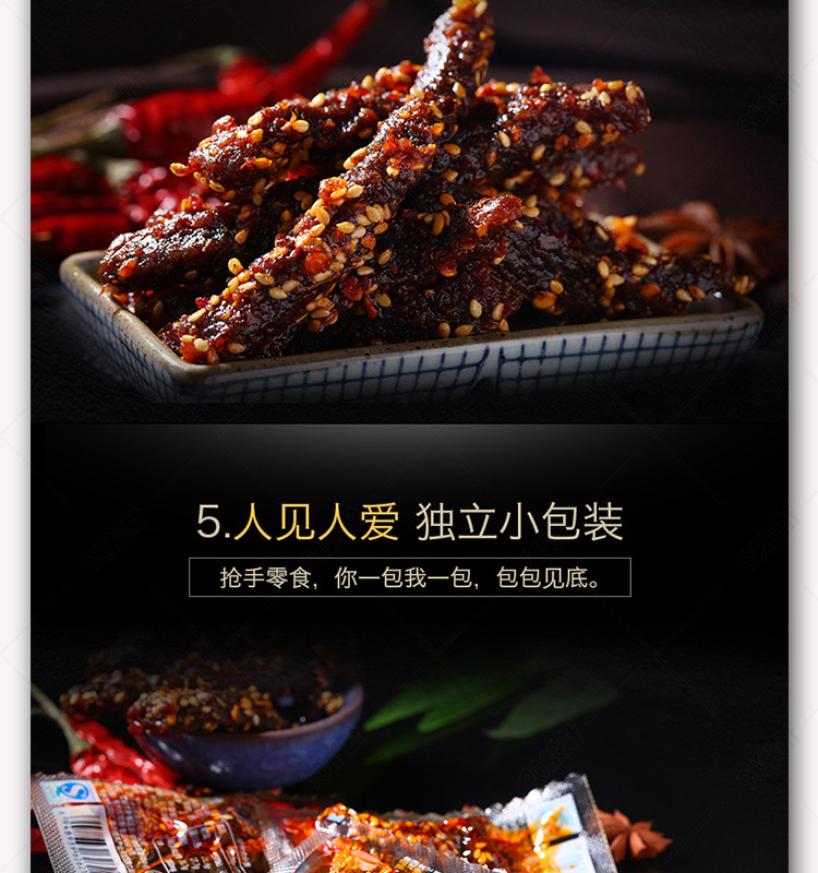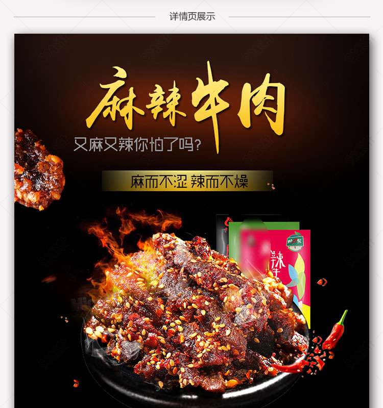 食品详情页 淘宝详情页 麻辣牛肉干详情页 小吃 牙签肉 猪肉干 火 自然 简约 毛笔笔刷