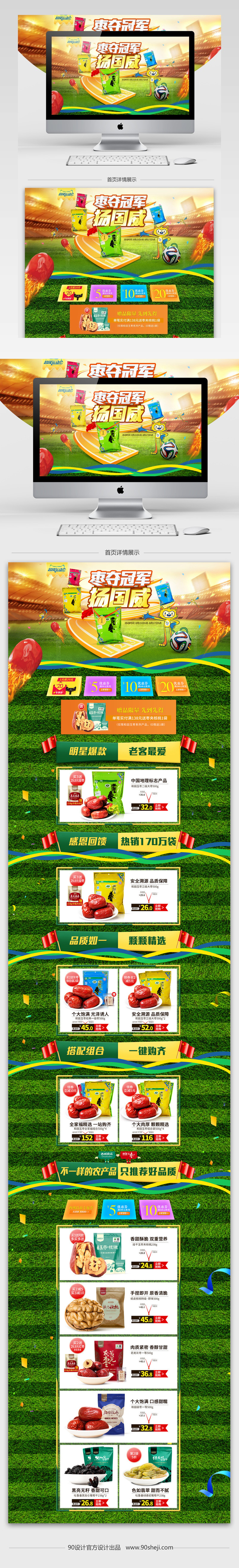 PC端首页 店铺首页 首页装修 食品首页 清新风 唯美风 坚果 零食 核桃 红枣 山楂