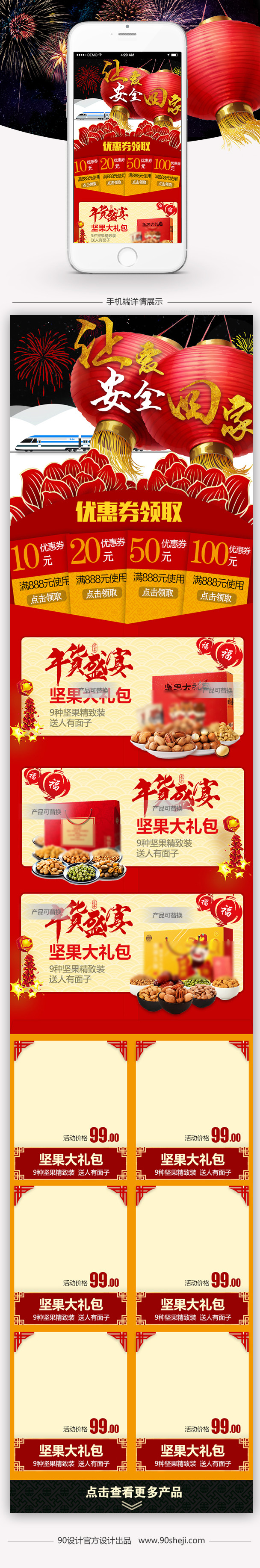 中国风淘宝天猫新年年货红色坚果零食手机首页模版psd