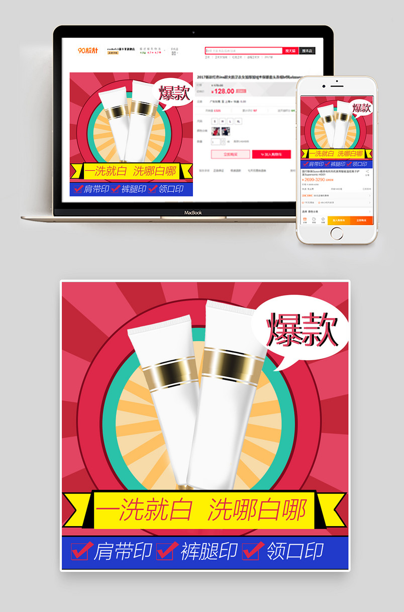 淘宝天猫 主图 美妆主图 深海泥主图 直通车图 放射性背景 几何背景 标题栏 卡通风格 简约对话框