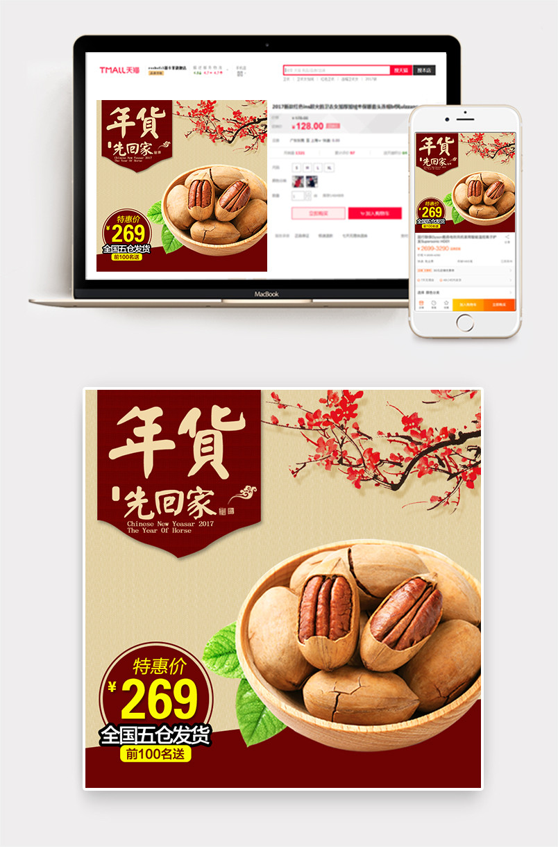 坚果 零食 主图 直通车 核桃 开心果 夏威夷果 碧根果 果干 梅花 花枝 中国风 复古 年货节 大气