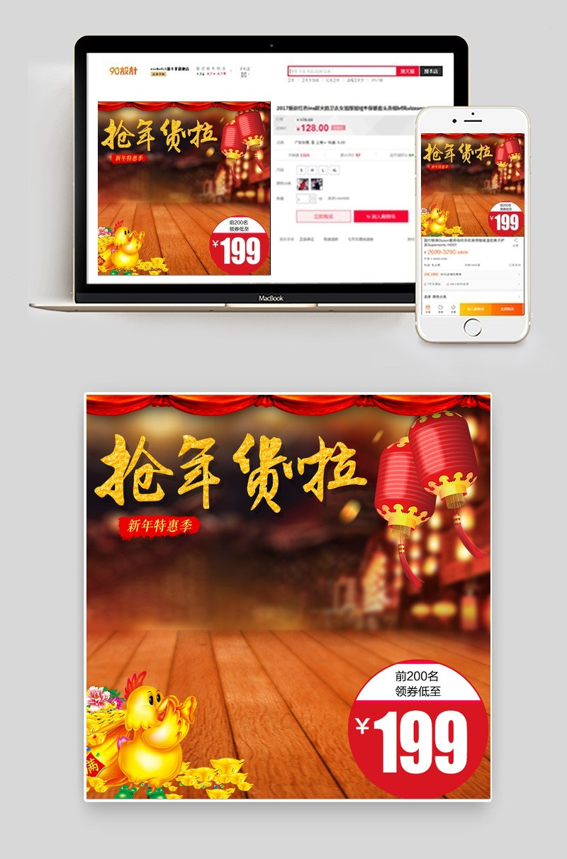 淘宝主图 淘宝直通车 新年主图 新年直通车 年货节主图 年货节直通车 抢年货 年货节主图模板 灯笼 模板 金鸡 红色幕布
