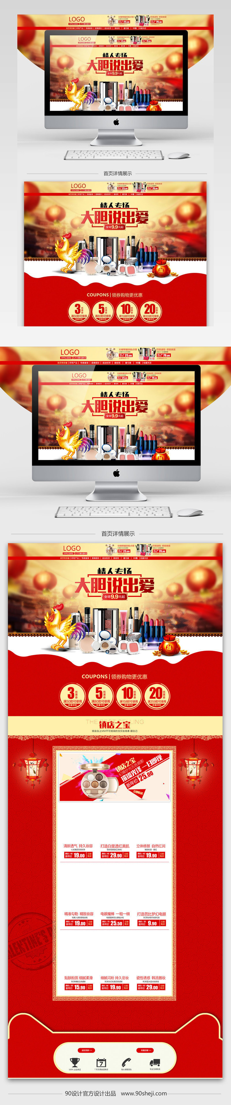 90设计提供中国风情人节美妆产品促销店铺首页PSD模版设计素材下载,高清PSD格式。【通用】多类目可用,产品、模特均可替换。【PSD】精细分层,贴好片。【设计】由90设计师独家设计。点击右侧免费下载按钮可进行中国风情人节美妆产品促销店铺首页PSD模版淘宝设计素材高速下载。