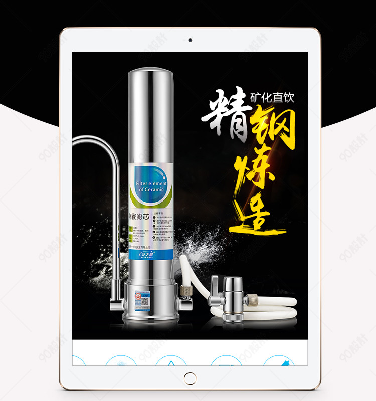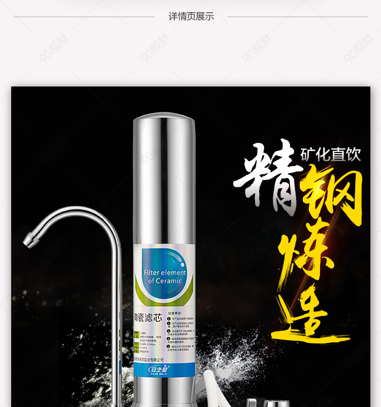 90设计提供简约风净水器详情页PSD模版设计素材下载,高清PSD格式。【通用】多类目可用,产品、模特均可替换。【PSD】精细分层,贴好片。【设计】由90设计师独家设计。点击右侧免费下载按钮可进行简约风净水器详情页PSD模版淘宝设计素材高速下载。