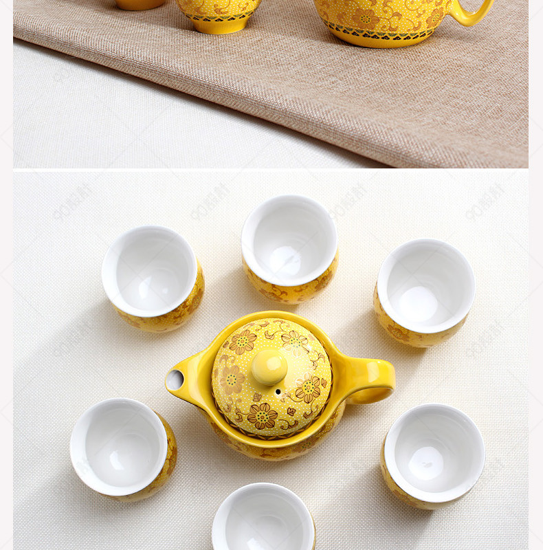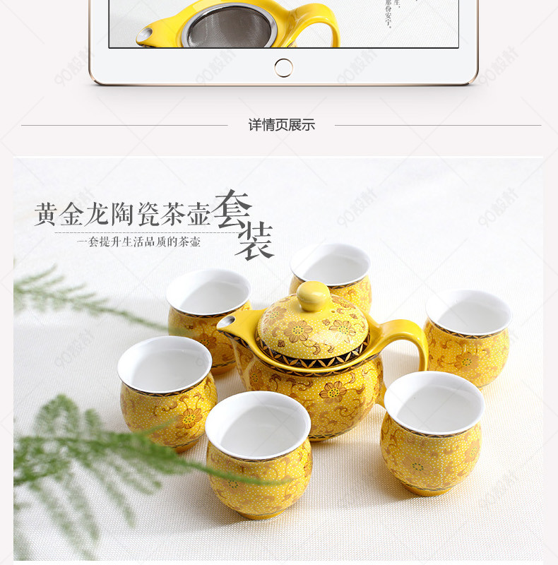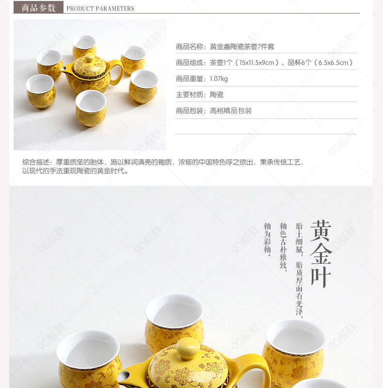 淘宝天猫厨具黄金花茶具详情页PSD模板