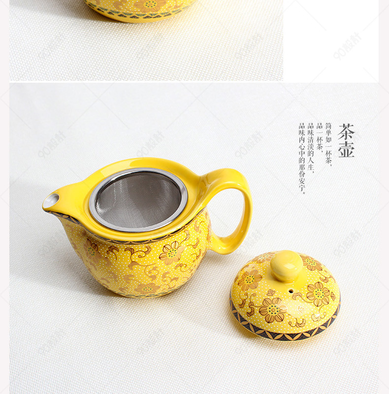 淘宝 天猫 哥窑 茶壶 陶瓷 详情页 黄金花 花朵 金银花 漏网 茶漏 茶道 模板 简约时尚 新颖别致 厨具详情页 优惠好货 简约风 茶具详情页 茶具 茶台 茶杯 茶叶罐