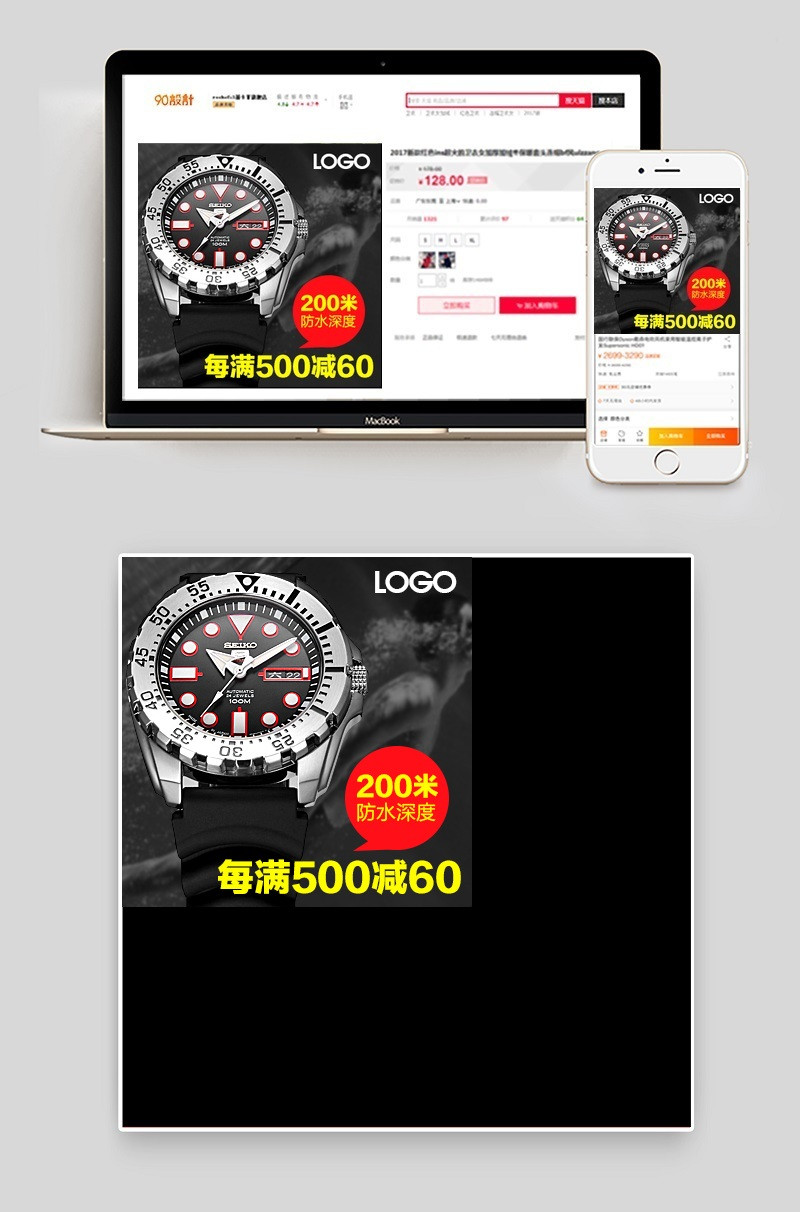 京东 潜水表 男表 防水手表 专业潜水 夜光表 快车图 psd源文件 促销 大气 时尚