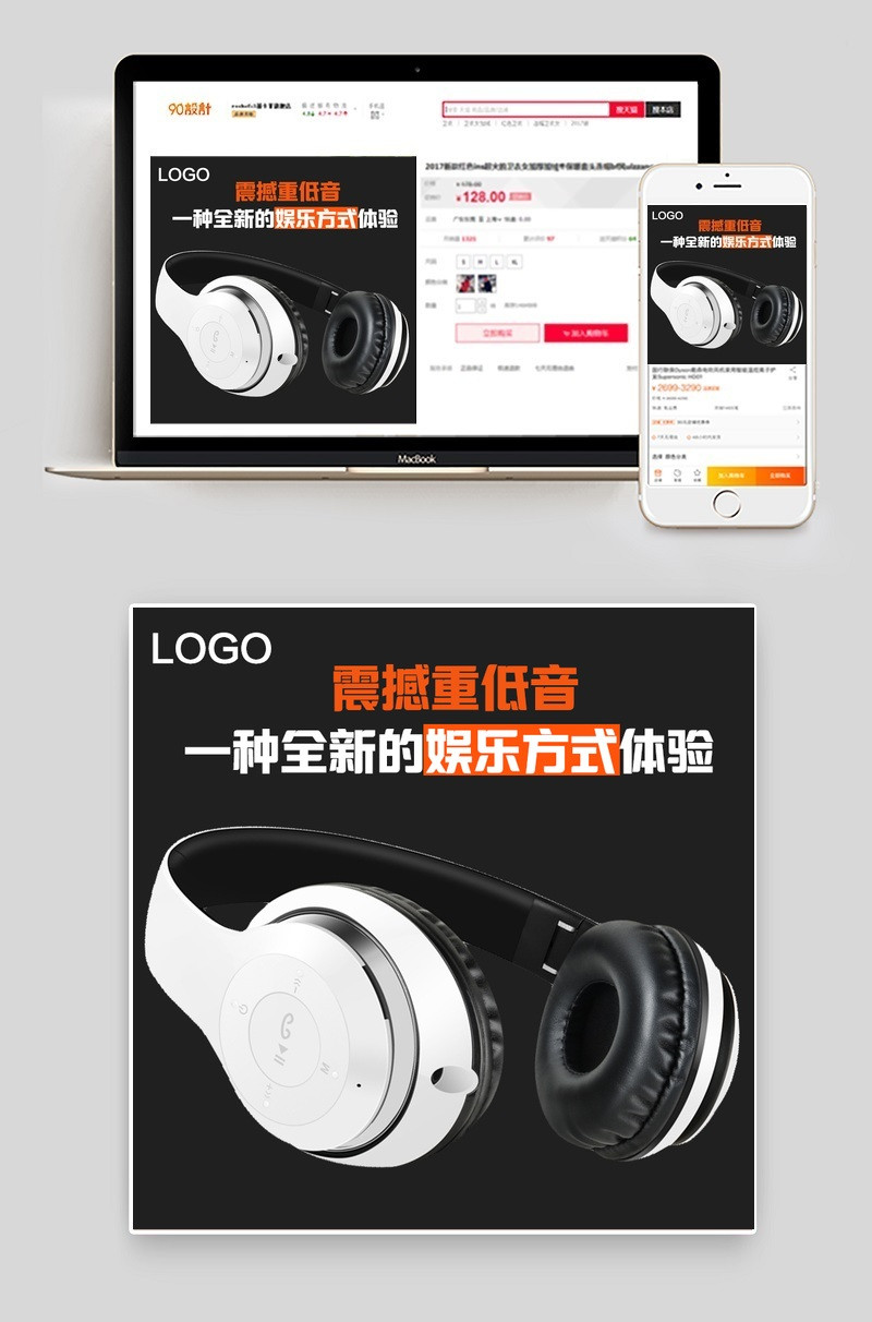 直通车 主图 促销 运动风 简约风 清新风 耳机 头戴耳机 蓝牙耳机