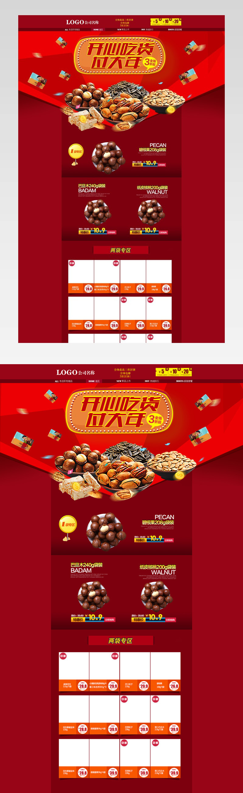 PC端首页 店铺首页 首页装修 食品首页 中国风 新年促销 坚果 零食 核桃 杏仁 夏威夷果
