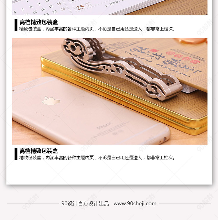 90设计提供古典中国风台历日历摆饰详情页设计素材下载,高清PSD格式。【通用】多类目可用,产品、模特均可替换。【PSD】精细分层,贴好片。【设计】由90设计师独家设计。点击右侧免费下载按钮可进行古典中国风台历日历摆饰详情页淘宝设计素材高速下载。