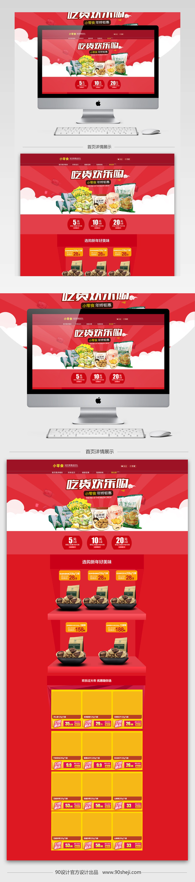 PC端首页 店铺首页 首页装修 食品首页 简约风 红色背景 坚果 零食 核桃 饼干 糖果
