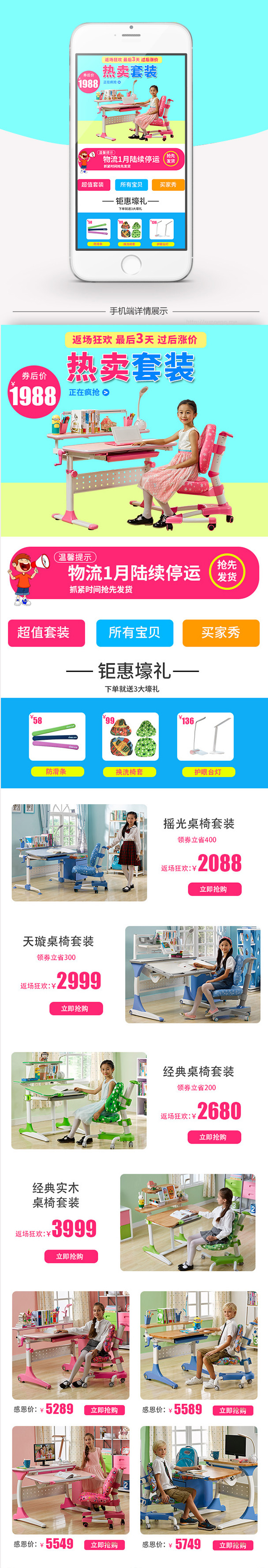 清新 可爱风 桌子 学习桌 椅子 学习桌套装 书桌 无线端首页 模板PSD 我怀念的