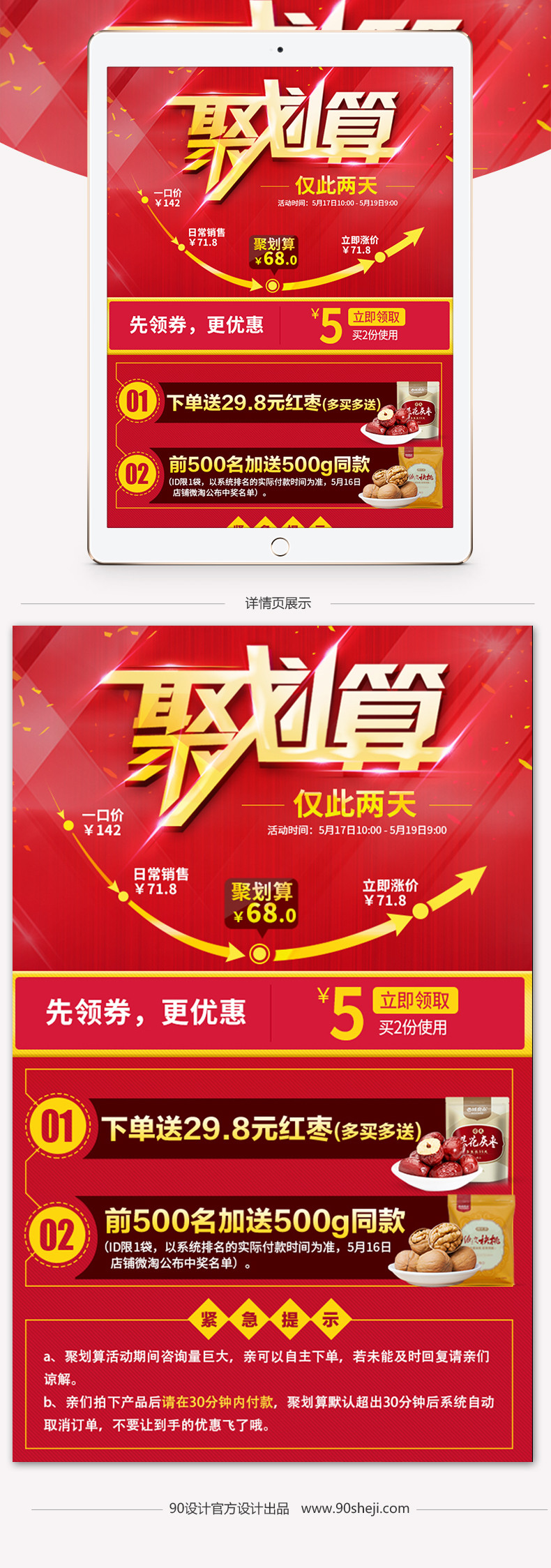 淘宝 天猫 聚划算 详情页 海报 降价 红色 促销 源文件 板块psd Mark