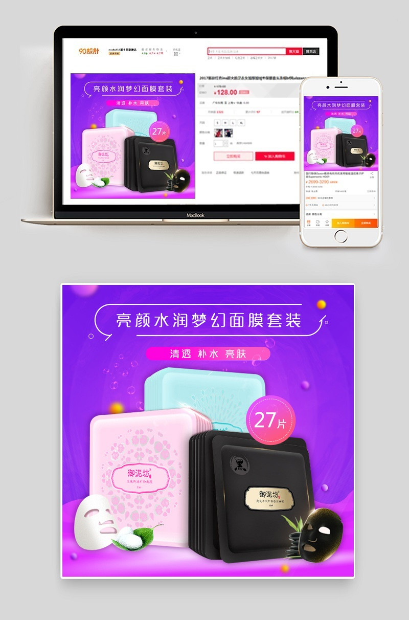 唯美护肤品面膜御泥坊主图直通车psd模板
