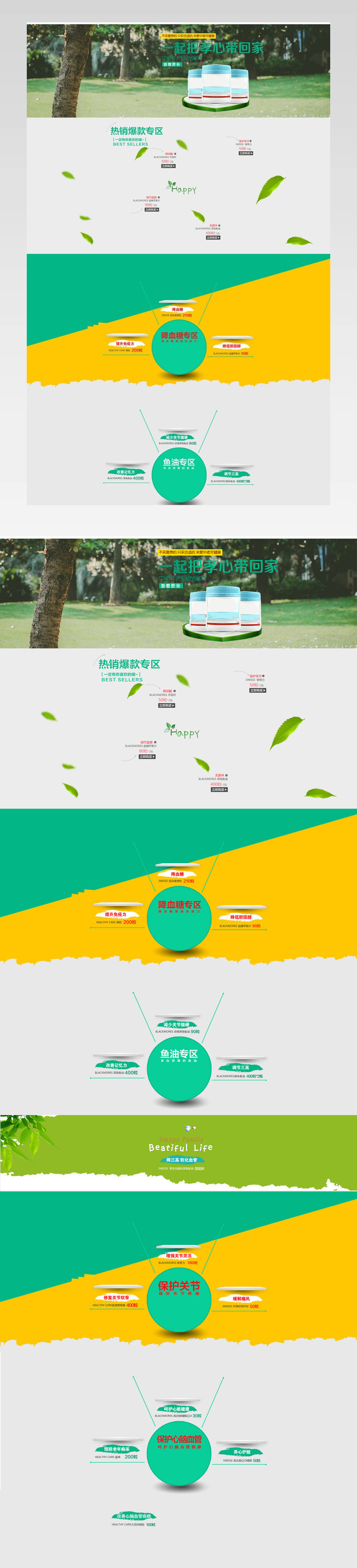 淘宝天猫自然风医药保健食品首页psd模板