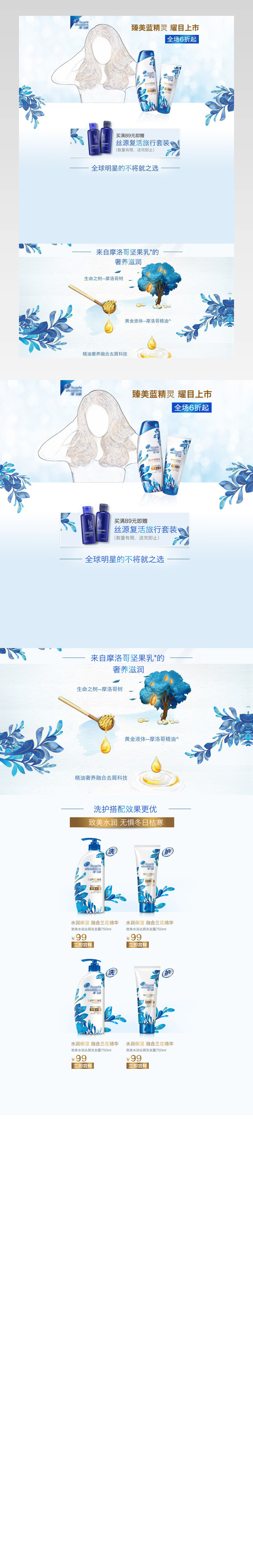 淘宝 天猫 蓝色 清新 洗发水首页 海飞丝 护发美发 护发素 发膜