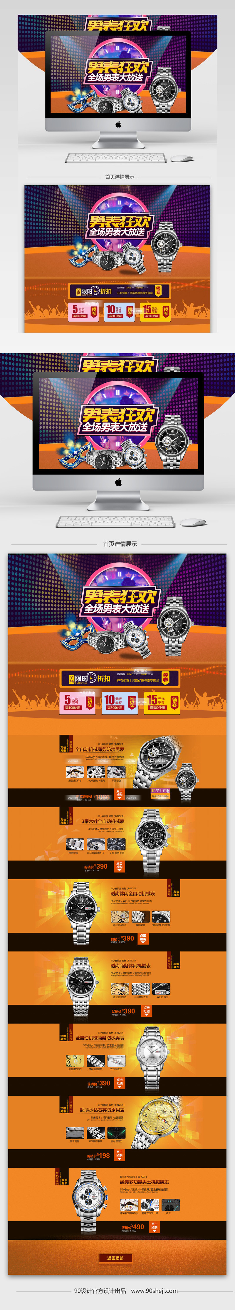 90设计提供男人节时尚手表首页psd模板设计素材下载,高清PSD格式。【通用】多类目可用,产品、模特均可替换。【PSD】精细分层,贴好片。【设计】由90设计师独家设计。点击右侧免费下载按钮可进行男人节时尚手表首页psd模板淘宝设计素材高速下载。