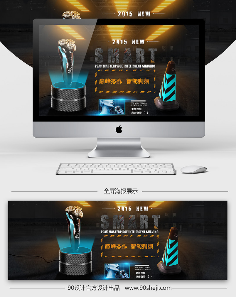 淘宝 时尚 酷炫 洗护用品 剃须刀 全屏海报 巅峰杰作 智能剃须 光效