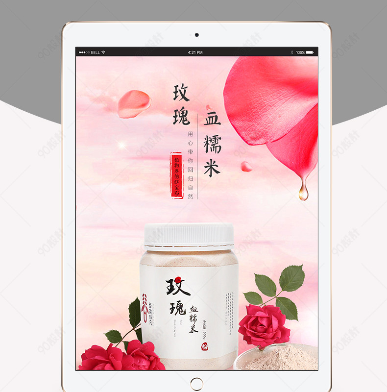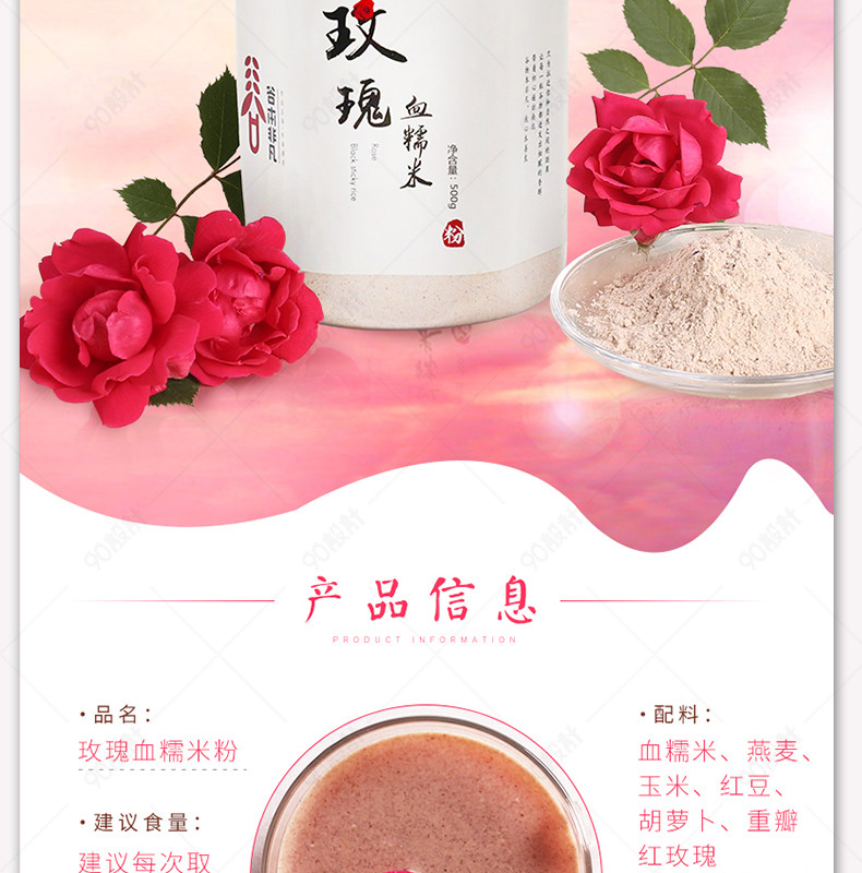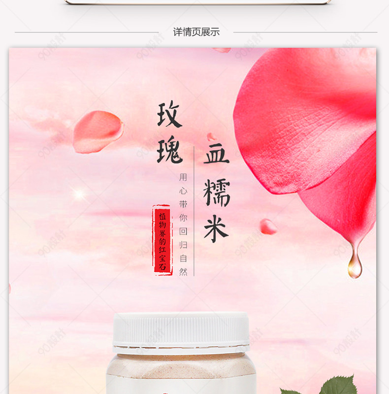 天猫淘宝 高端大气 五谷杂粮 唯美 花瓣漂浮背景 粉色浪漫 血糯米 瓶装 养生 健康养生 详情页 ゆ、 流苏 Forget。