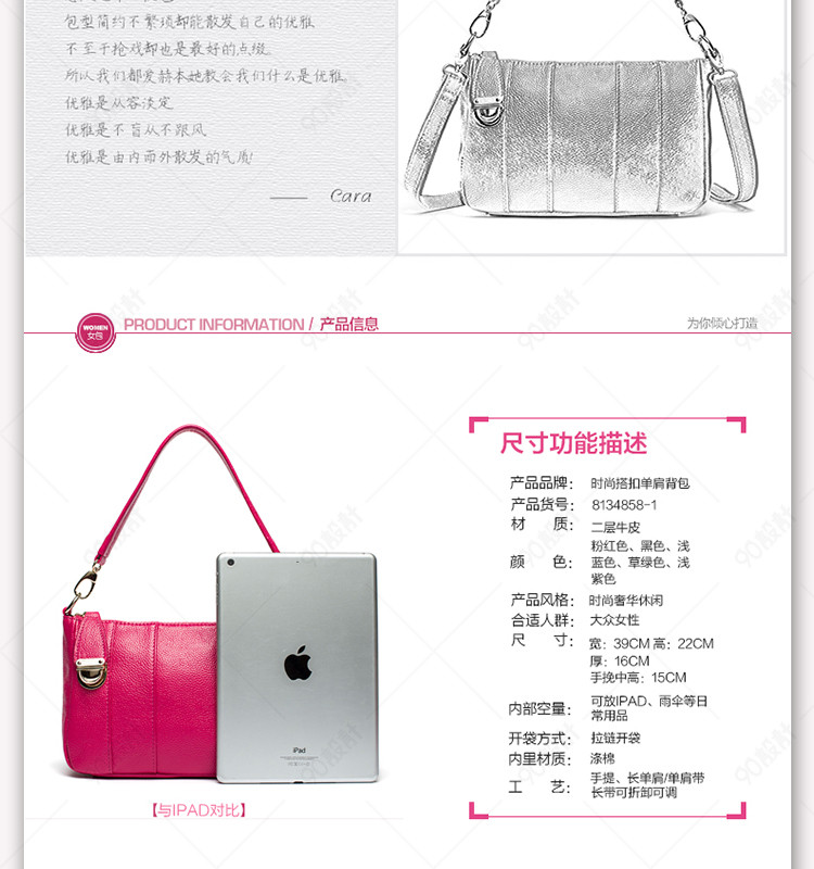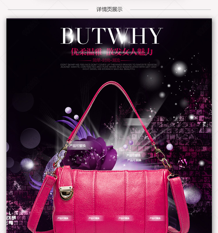 90设计提供淘宝气质唯美女包详情页PSD模板设计素材下载,高清PSD格式。【通用】多类目可用,产品、模特均可替换。【PSD】精细分层,贴好片。【设计】由90设计师独家设计。点击右侧免费下载按钮可进行淘宝气质唯美女包详情页PSD模板淘宝设计素材高速下载。