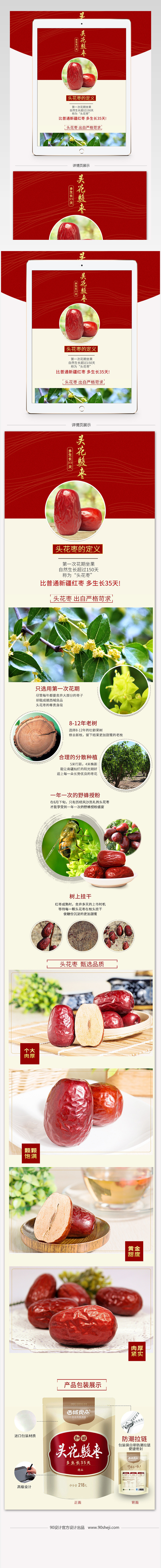 90设计提供清新简约风红枣食品详情页PSD模版设计素材下载,高清PSD格式。【通用】多类目可用,产品、模特均可替换。【PSD】精细分层,贴好片。【设计】由90设计师独家设计。点击右侧免费下载按钮可进行清新简约风红枣食品详情页PSD模版淘宝设计素材高速下载。