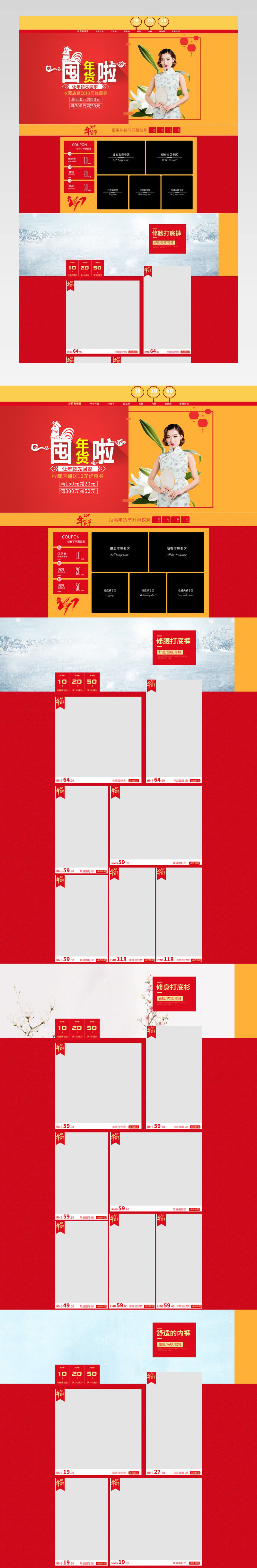 PC端首页 首页装修 店铺首页 女装首页 简约风 中国风 新年 年货节 女装 大码女装 T恤 雪纺衫 休闲裤