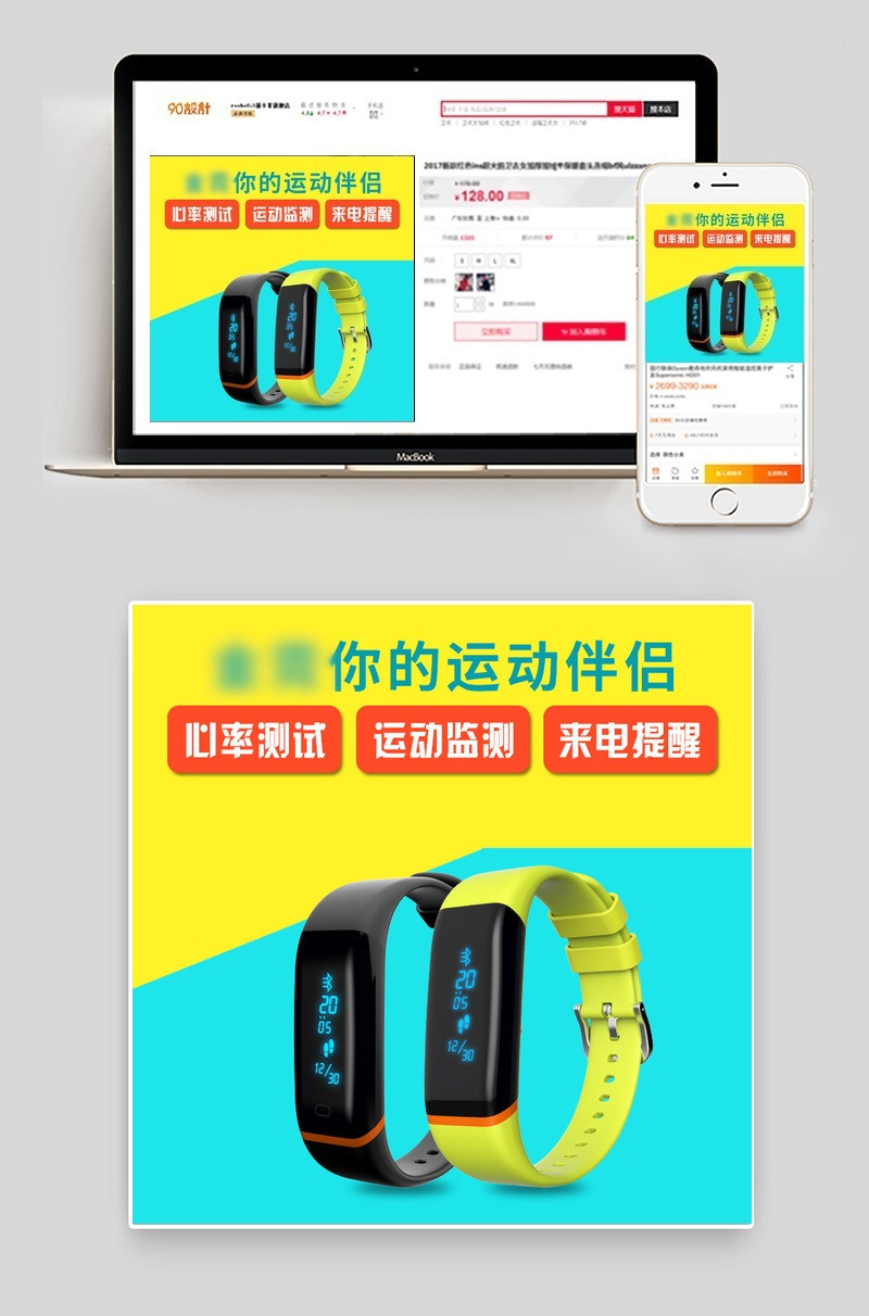 时尚智能运动手环主图PSD模板