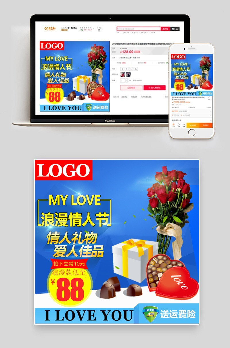 淘宝天猫七夕情人节促销主图直通车巧克力psd