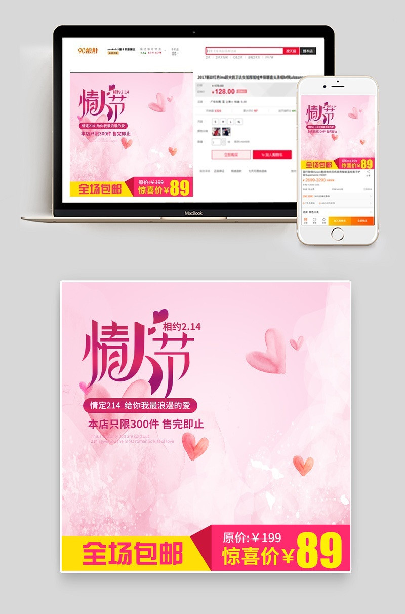 淘宝天猫情人节主图爱心背景PSD模版