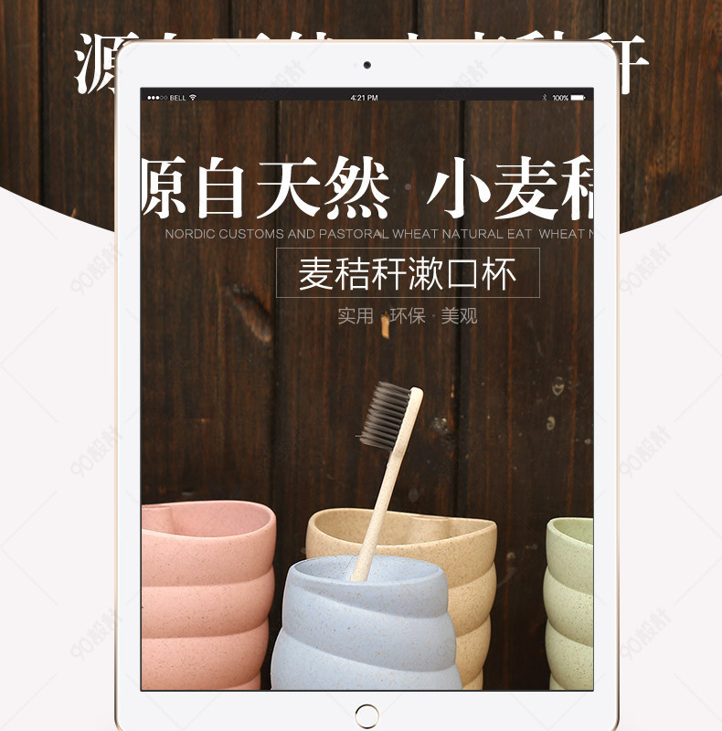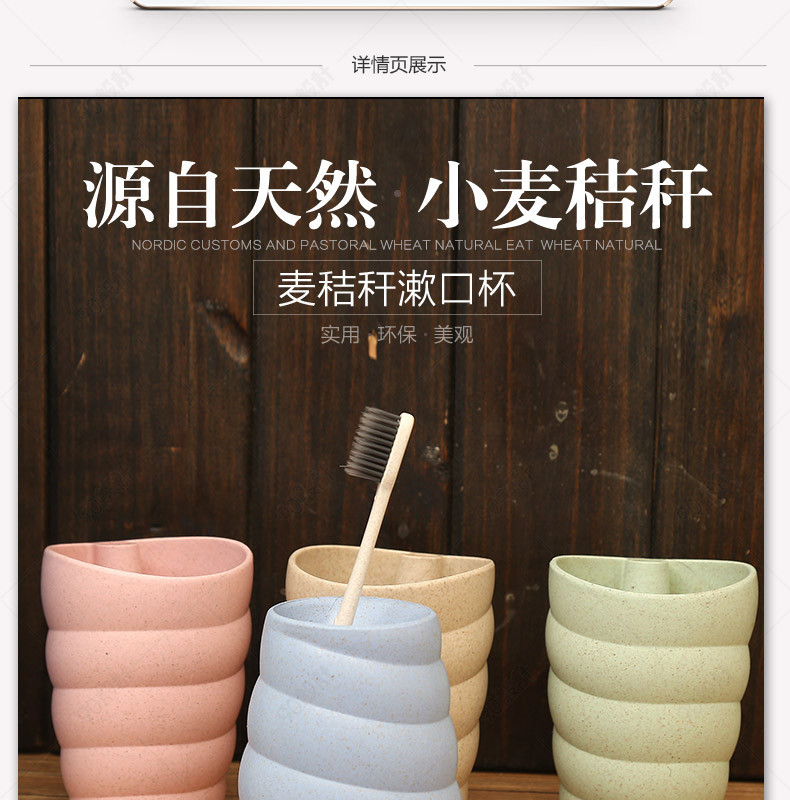 天猫天然厨具小麦秸秆漱口杯详情页PSD模板