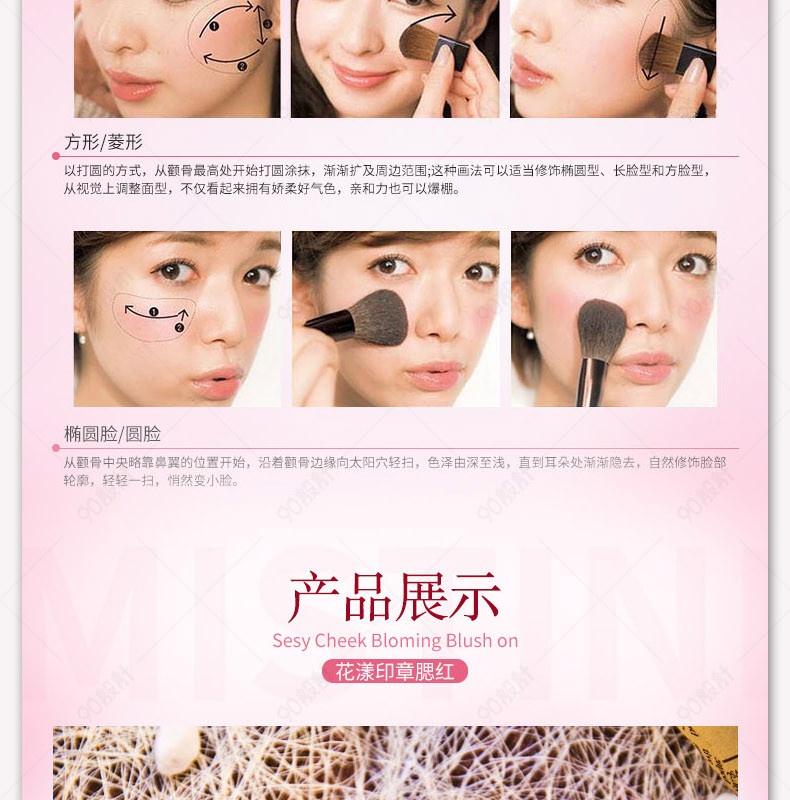粉色背景 唯美 粉末 花瓣 美妆详情 粉饼 粉底液 眼影 腮红 美女素材