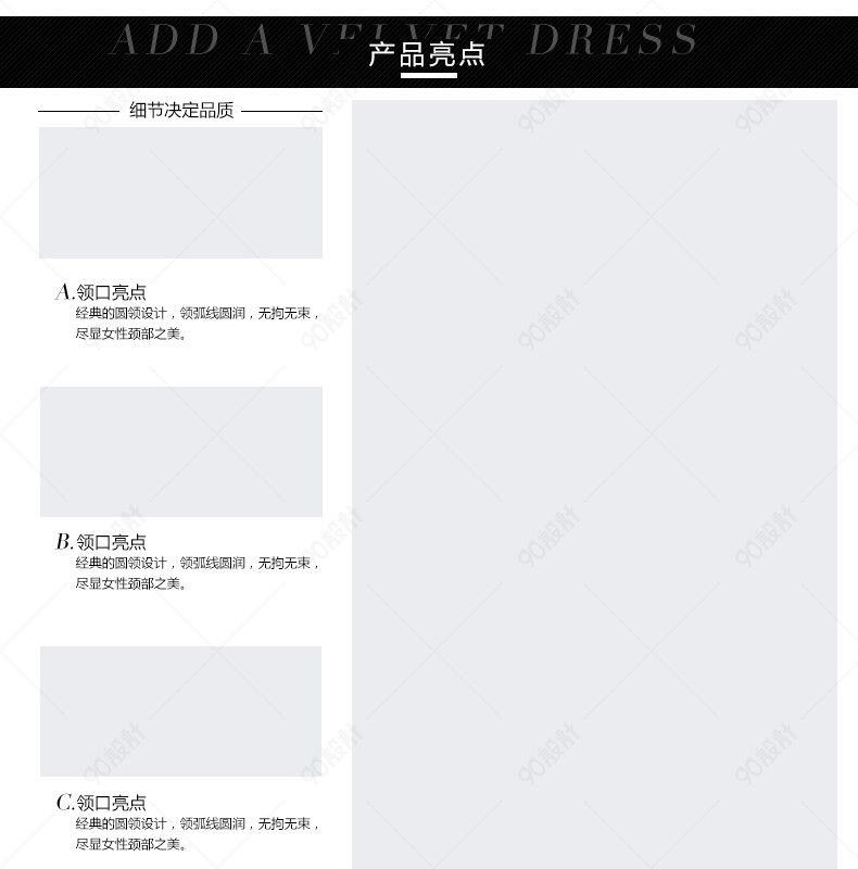 90设计提供大码连衣裙详情页下载设计素材下载,高清PSD格式。【通用】多类目可用,产品、模特均可替换。【PSD】精细分层,贴好片。【设计】由90设计师独家设计。点击右侧免费下载按钮可进行大码连衣裙详情页下载淘宝设计素材高速下载。