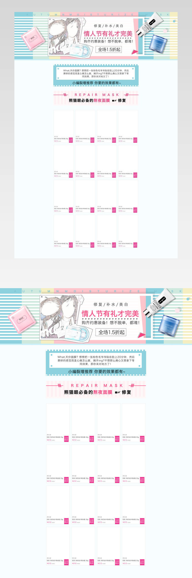 情人节 214 清新活泼 七夕 美妆首页 护肤品首页 保湿霜 面膜 洁面 美妆 彩妆 清新条纹背景
