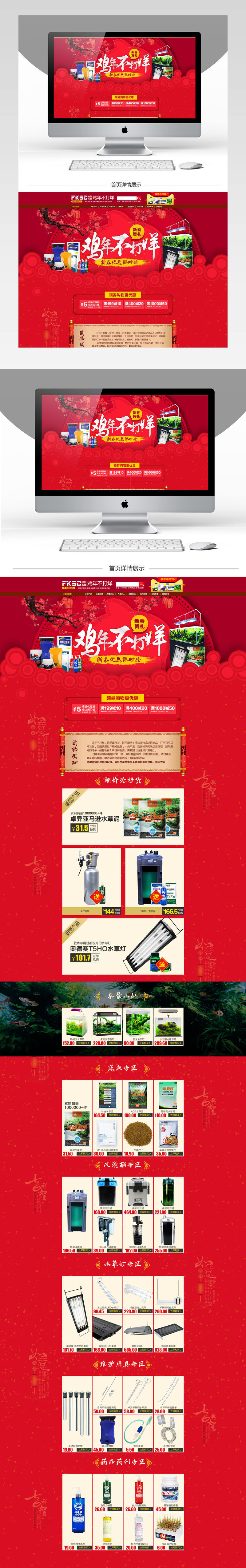 红色喜庆背景 春节 促销 年货 淘宝 天猫 年货节 水草 水族 器材红色首页 幼ル 長