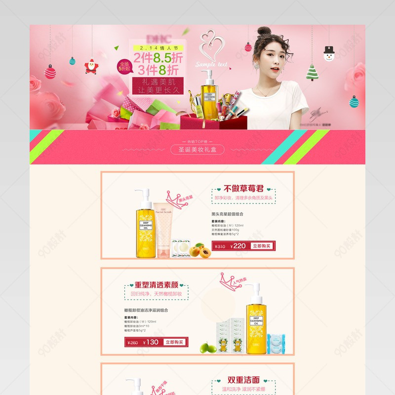 90设计提供214情人节唯美美妆护肤品首页设计素材下载,高清PSD格式。【通用】多类目可用,产品、模特均可替换。【PSD】精细分层,贴好片。【设计】由90设计师独家设计。点击右侧免费下载按钮可进行214情人节唯美美妆护肤品首页淘宝设计素材高速下载。