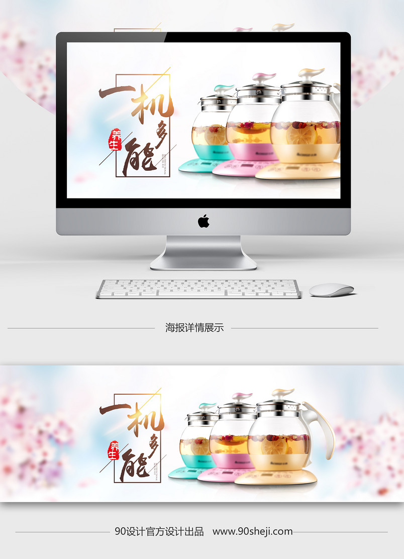 小清新 养生壶 小家电 生活电器 养生壶海报 樱花 花 清新背景 榨汁机 电饭煲 电炖锅 光 天空背景 樱花背景 春季 电器 厨房小家电 养生壶 榨汁机 养生