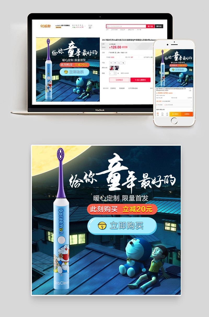 卡通动漫风生活电器电动牙刷主图直通PSD模版