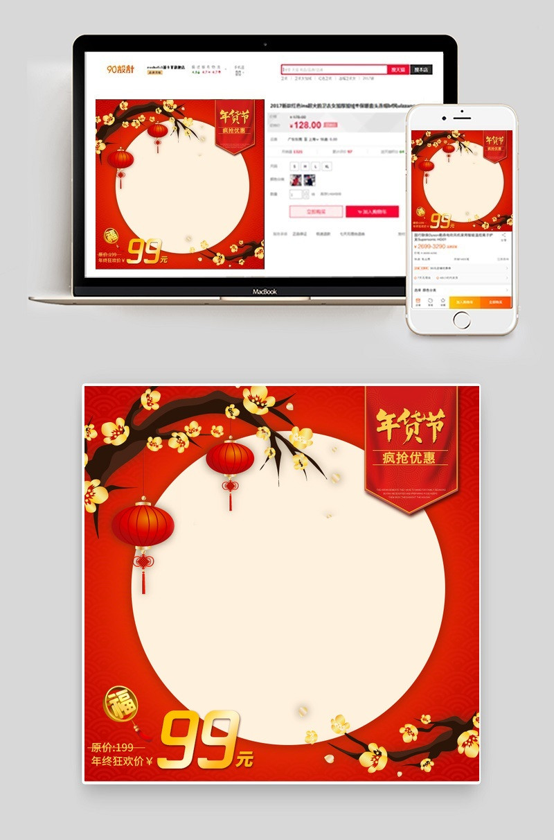 天猫淘宝年货节新年年货通用直通车主图psd模板