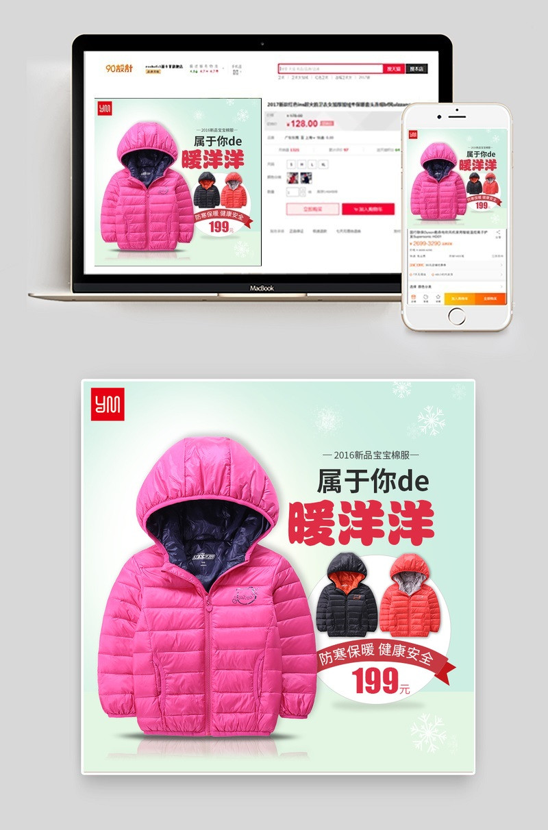 淡绿色清新童装羽绒服直通车主图spd模板