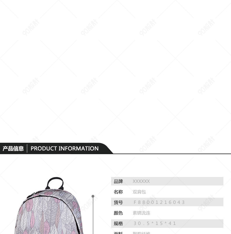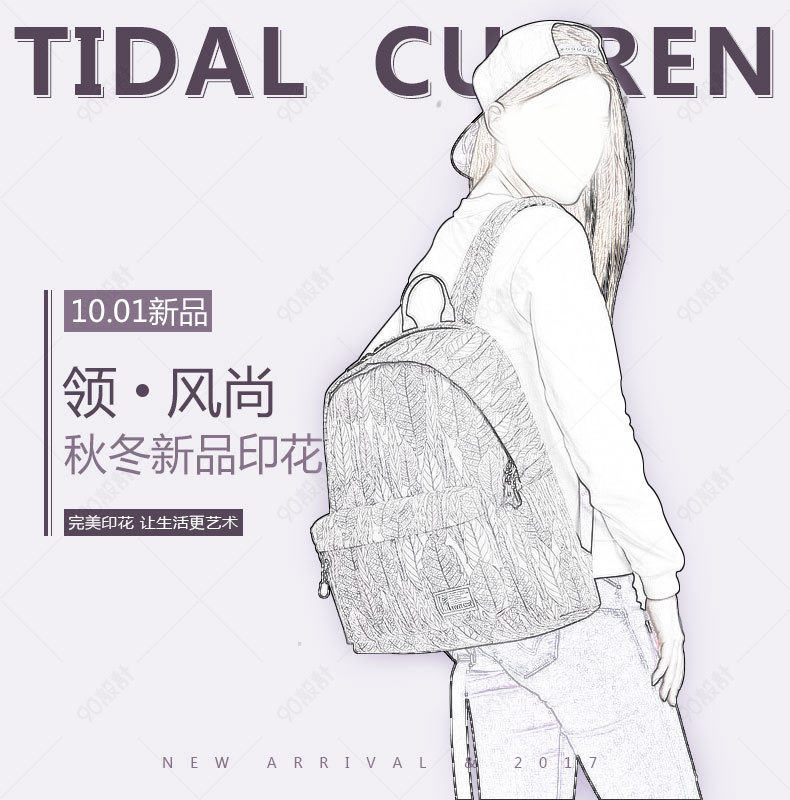 90设计提供简约学院风新品印花双肩包设计素材下载,高清PSD格式。【通用】多类目可用,产品、模特均可替换。【PSD】精细分层,贴好片。【设计】由90设计师独家设计。点击右侧免费下载按钮可进行简约学院风新品印花双肩包淘宝设计素材高速下载。