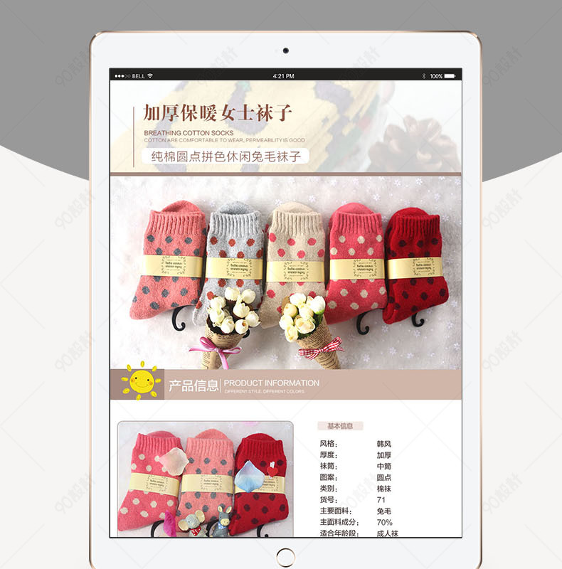90设计提供甜美可爱风女士棉袜详情页PSD模版设计素材下载,高清PSD格式。【通用】多类目可用,产品、模特均可替换。【PSD】精细分层,贴好片。【设计】由90设计师独家设计。点击右侧免费下载按钮可进行甜美可爱风女士棉袜详情页PSD模版淘宝设计素材高速下载。