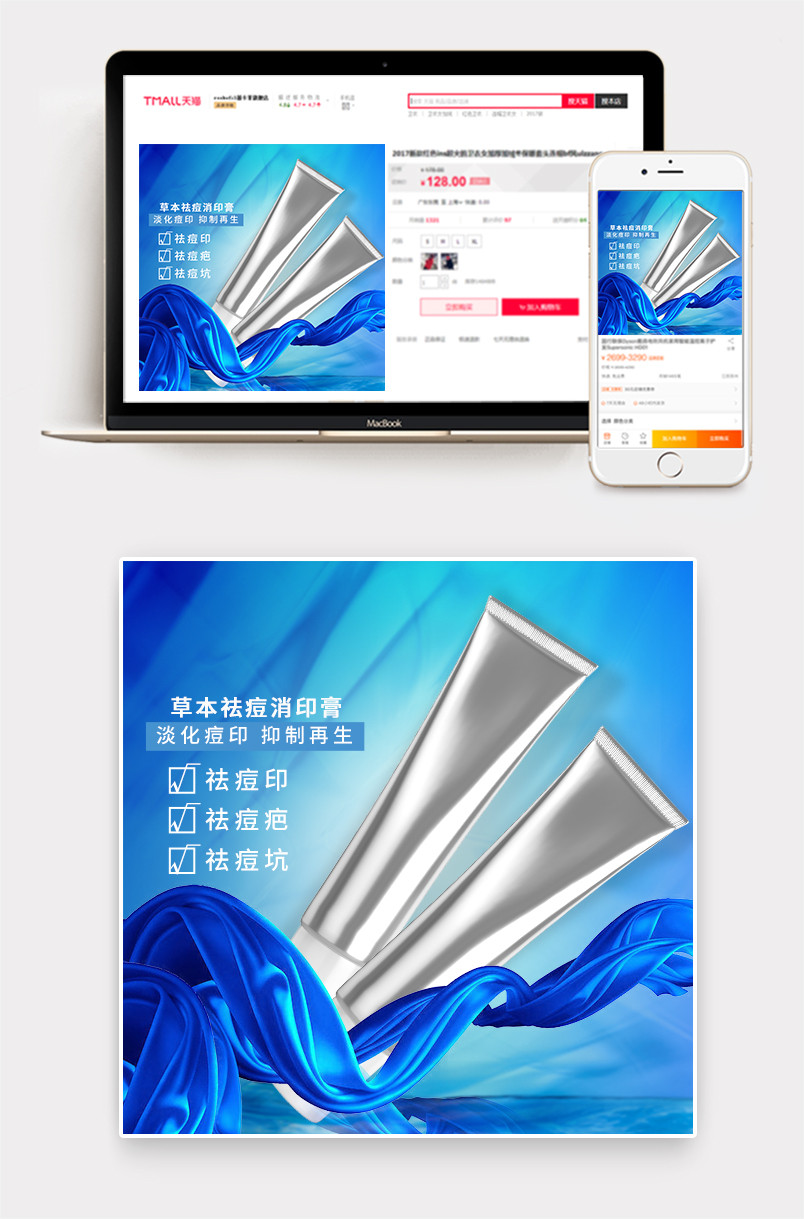 蓝色时尚风去痘印膏主图psd模板
